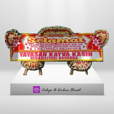 Rp 1.000.000CAHYA & EMBUN FLORIST, merupakan Toko Bunga Bogor hadir di antara Toko Bunga Tajur Bogor, mengerjakan aneka karangan bunga di Bogor langsung, melayani pesan antar Daerah Tajur dan sekitarnya, menjual Karangan Bunga Papan, Karangan Hand Bouquet, Karangan Bunga Meja, Karangan Bunga Standing, Karangan Bunga Krans, Karangan Bunga Salib, Karangan Bunga Gunting Pita, Karangan Bunga Parcel… selengkapnya