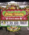 Bunga Papan Bogor 67, dari Bunga Astar Ukuran 2 m x 1,2 m, ucapan Happy Wedding.