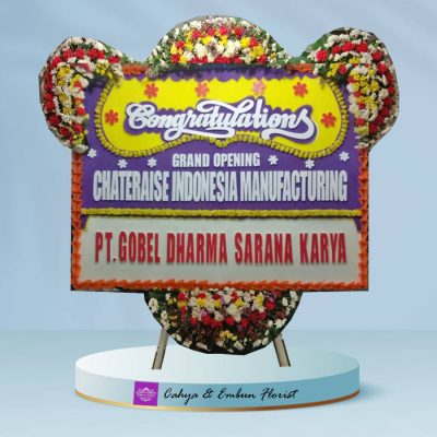 Papan Bunga Congrats 004, produk pilihan terbaik Cahya & Embun Florist – Toko Bunga Bogor, ukuran 2 x 1,5 (meter) bunga 4 titik, untuk ucapan congratulations dan lain-lain.
