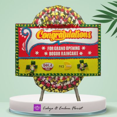 Papan Bunga Congrats 013, produk pilihan terbaik Cahya & Embun Florist – Toko Bunga Bogor, ukuran 2 x 1,2 (meter) bunga atas bawah, untuk ucapan congratulations dan lain-lain.