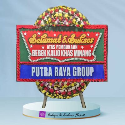 Papan Bunga Selamat & Sukses 021, produk pilihan terbaik Cahya & Embun Florist – Toko Bunga Bogor, ukuran 2 x 1,2 (meter) bunga atas bawah, untuk ucapan selamat & sukses pada acara wisuda, pembukaan, dan lain-lain.