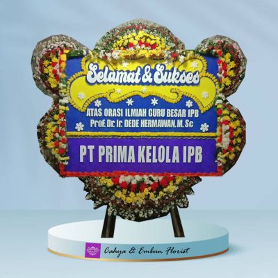 Papan Bunga Selamat & Sukses 029, produk pilihan terbaik Cahya & Embun Florist – Toko Bunga Bogor, ukuran 2 x 1,5 (meter) bunga jambul 6 titik, untuk ucapan selamat & sukses pada acara wisuda, pembukaan, dan lain-lain.